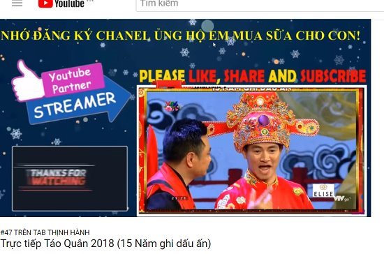 Tuy nhiên, ngay lúc chương trình Táo quân 2018 đang phát sóng đã có khá nhiều kênh YouTube phát sóng trực tiếp cùng lúc với VTV. Những kênh vi phạm bản quyền này đã dùng tiểu xảo quen thuộc là thu nhỏ kích cỡ màn hình, bóp méo tiếng để qua mặt YouTube. Cho đến tối ngày mùng 1 Tết đã có những kênh YouTube thu hút được 200.000 lượt xem cho chương trình Táo quân 2018.